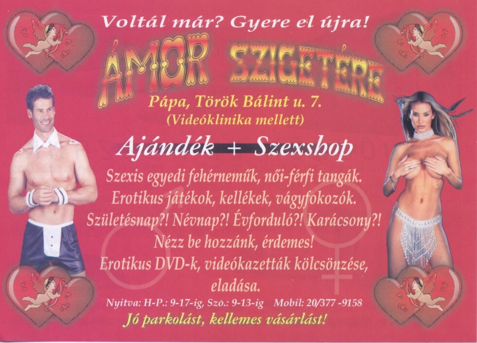 Erotikus videókazetták, DVD-k kölcsönzése, eladása - Ajándéktárgyak forgalmazása