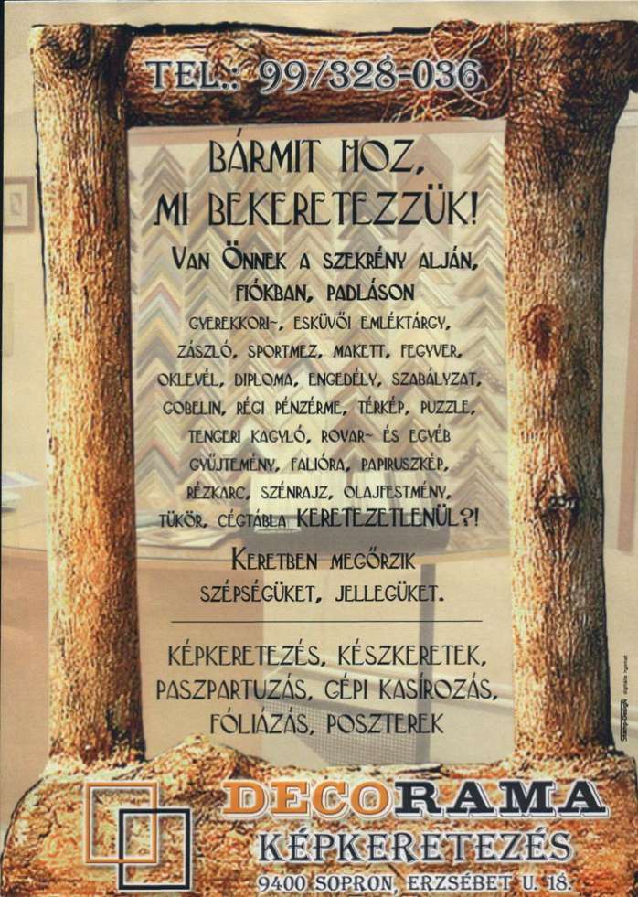 DECORAMA Képkeretezés | 9400 Sopron, Erzsébet u. 18.