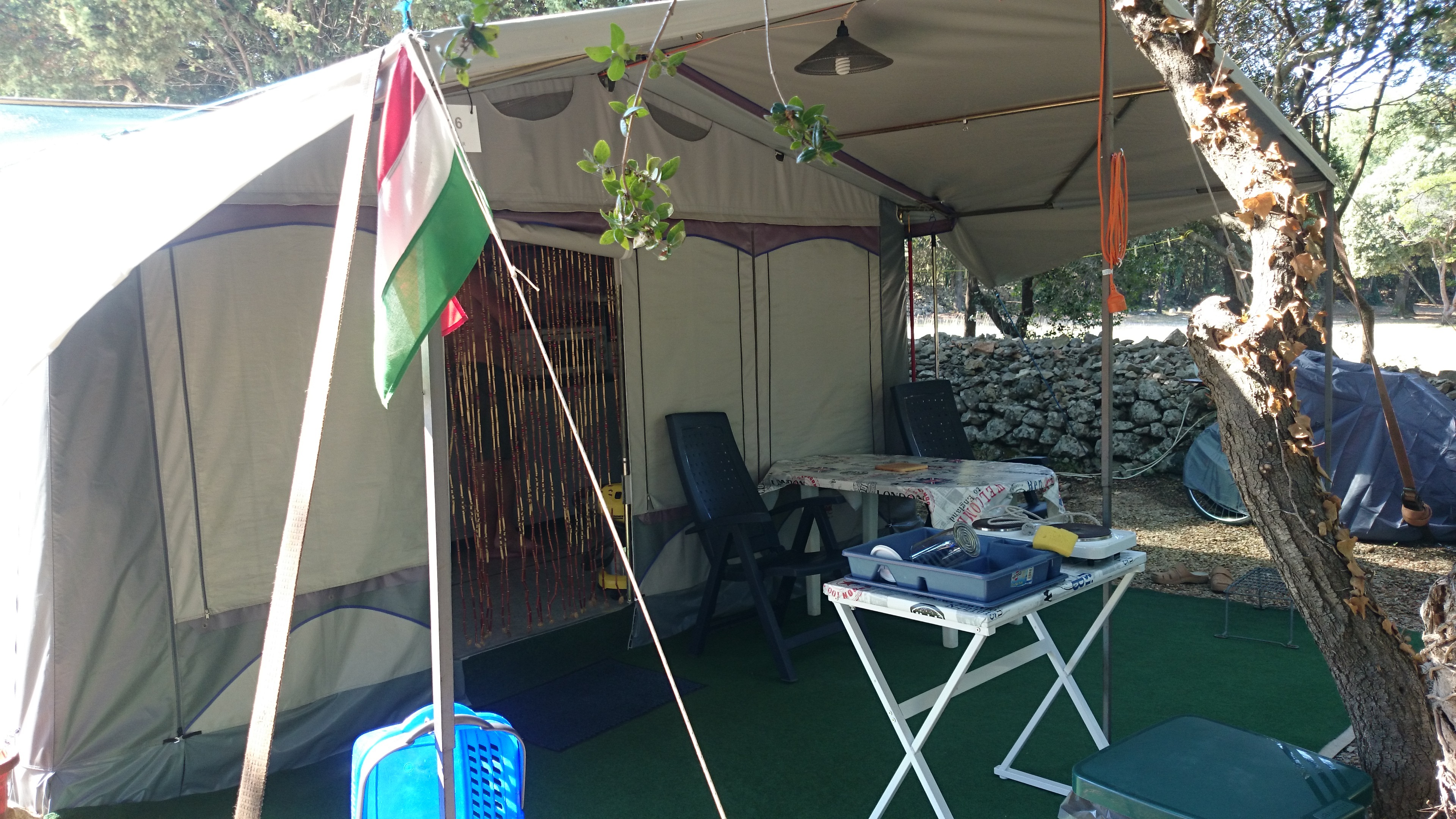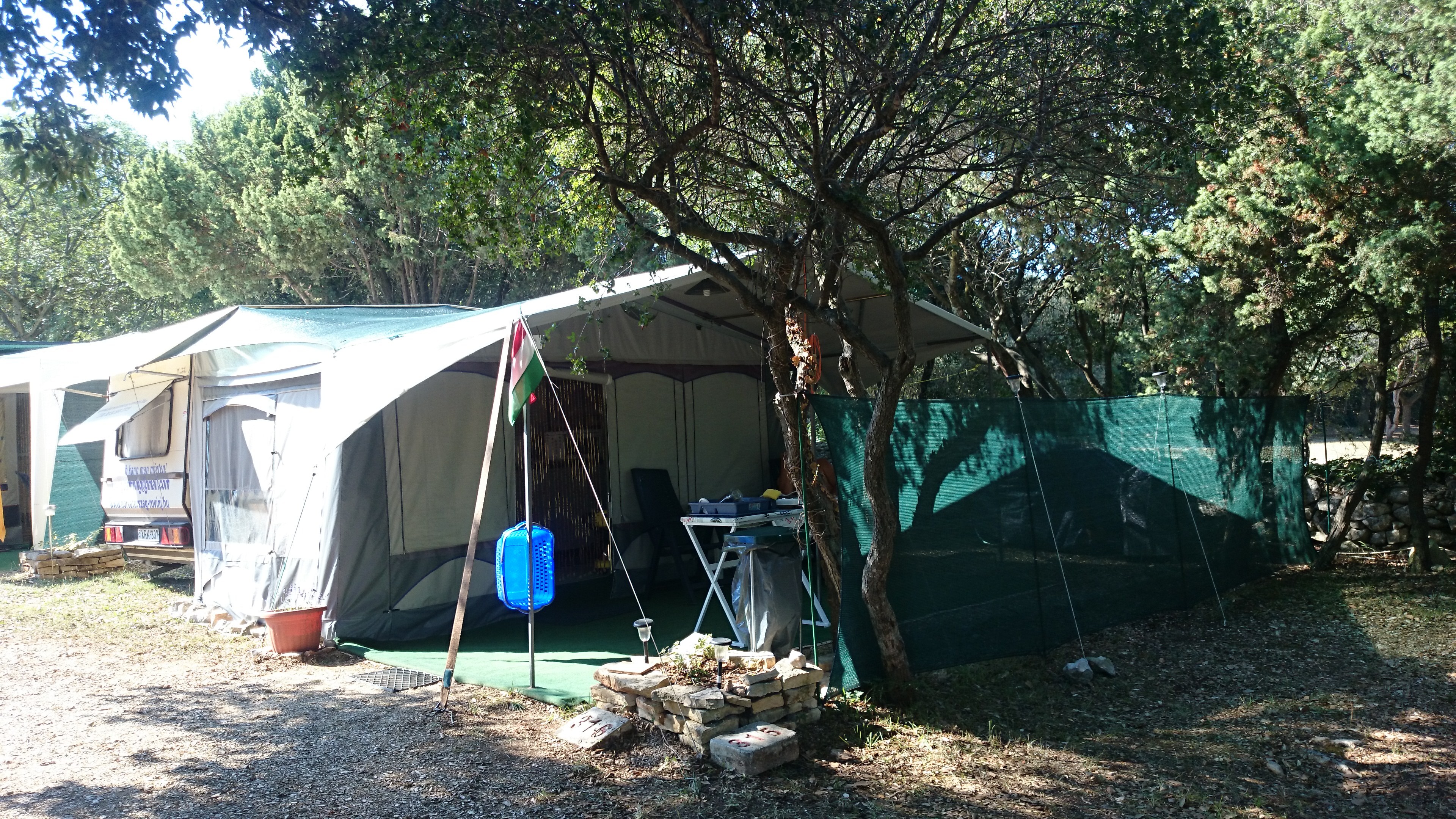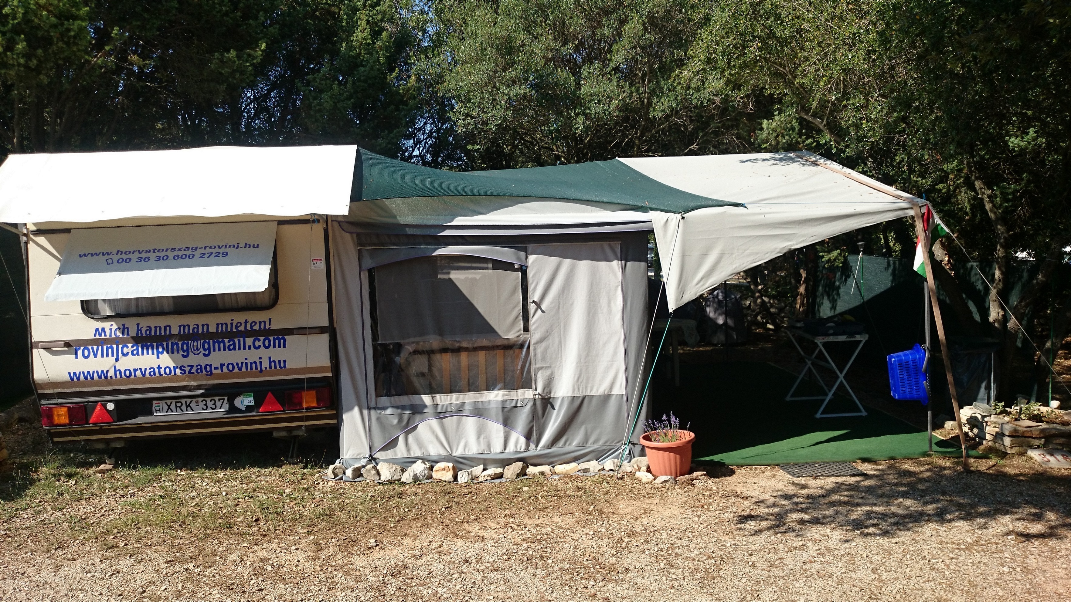 Bérlőink részére modern, igényesen felszerelt, (4-5) illetve (4-6) személyes „Split” klímás lakókocsik (3 db) állnak rendelkezésre a kempingben, (kb.100-m a tengertől és a vizesblokktól) amelyekben 4-6 személy részére tudunk kényelmes elhelyezést nyújtani. A lakókocsihoz zárt elő sátor és még kb. 3x3 m-es pavilon tartozik. Az elő sátorban fa padlózat, PVC padlóborítással biztosítja a kényelmes tartózkodást. A lakókocsik kerti bútorral, hűtőszekrénnyel, mini konyhával, konyhai eszközökkel, mikrohullámú sütővel, edényekkel, 2 főzőlapos villany rezsóval, ágyneművel felszereltek, (ágyneműhuzatot vinni kell). Részletes felszereltség listát e-mailban küldünk.