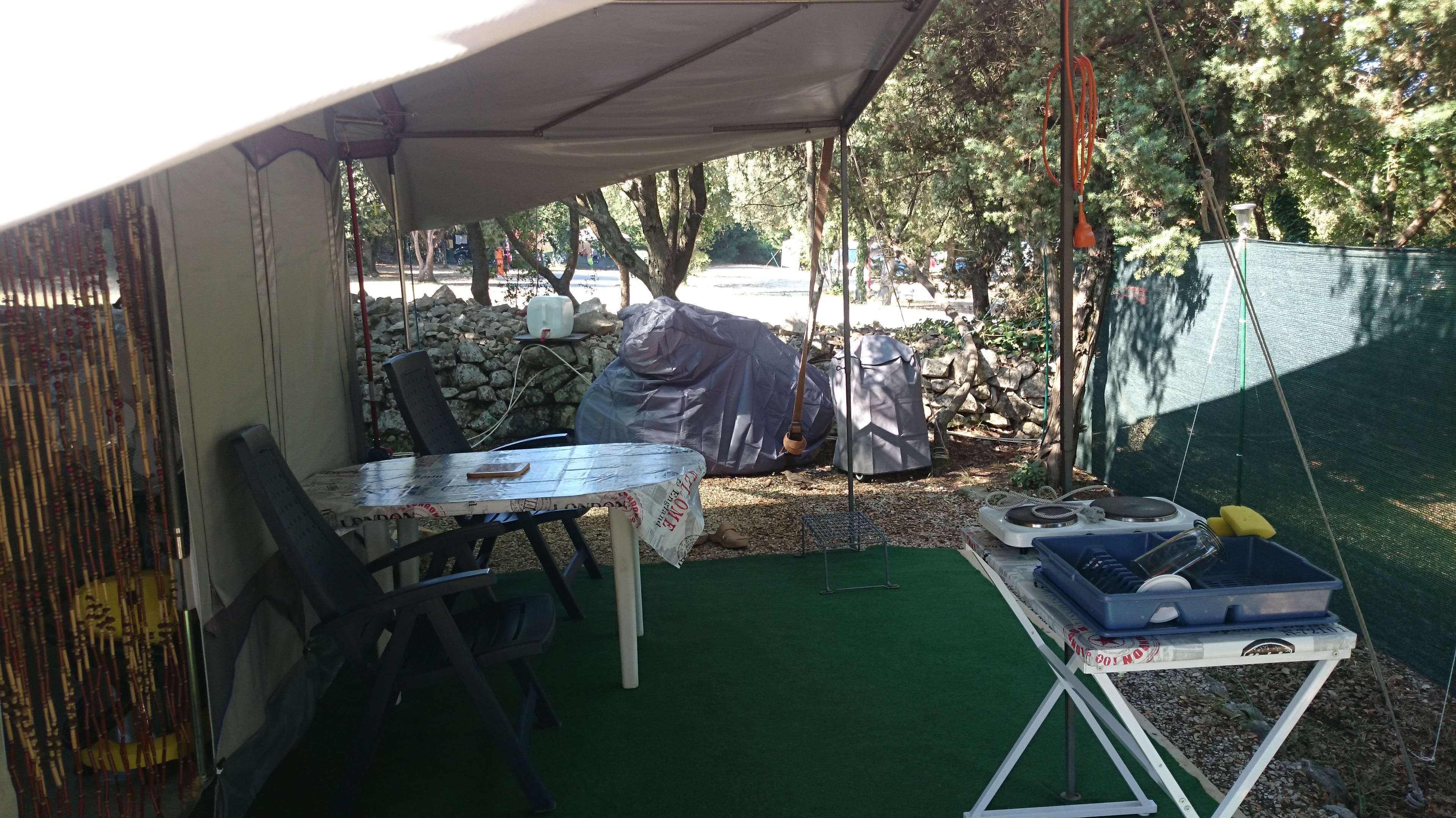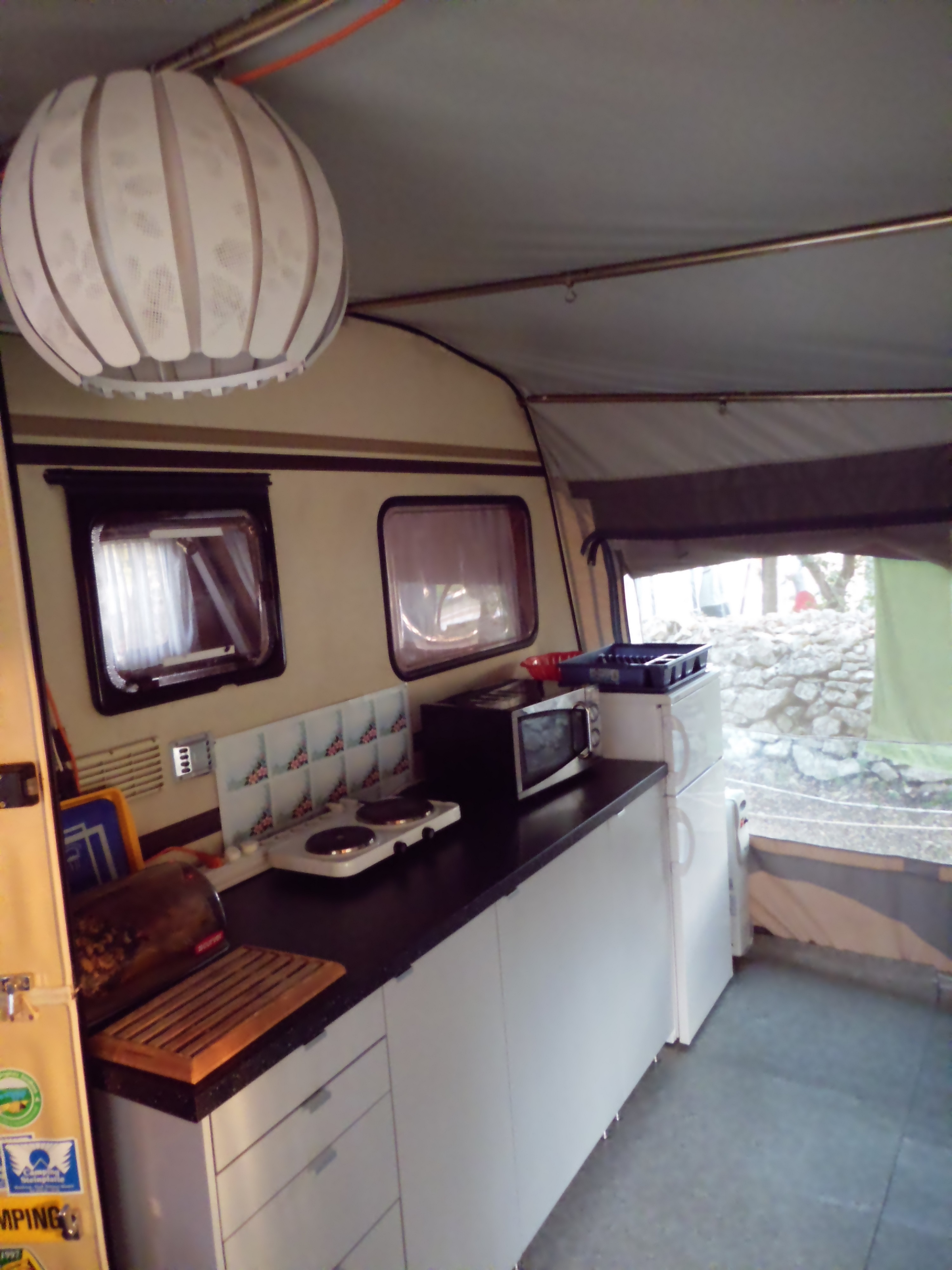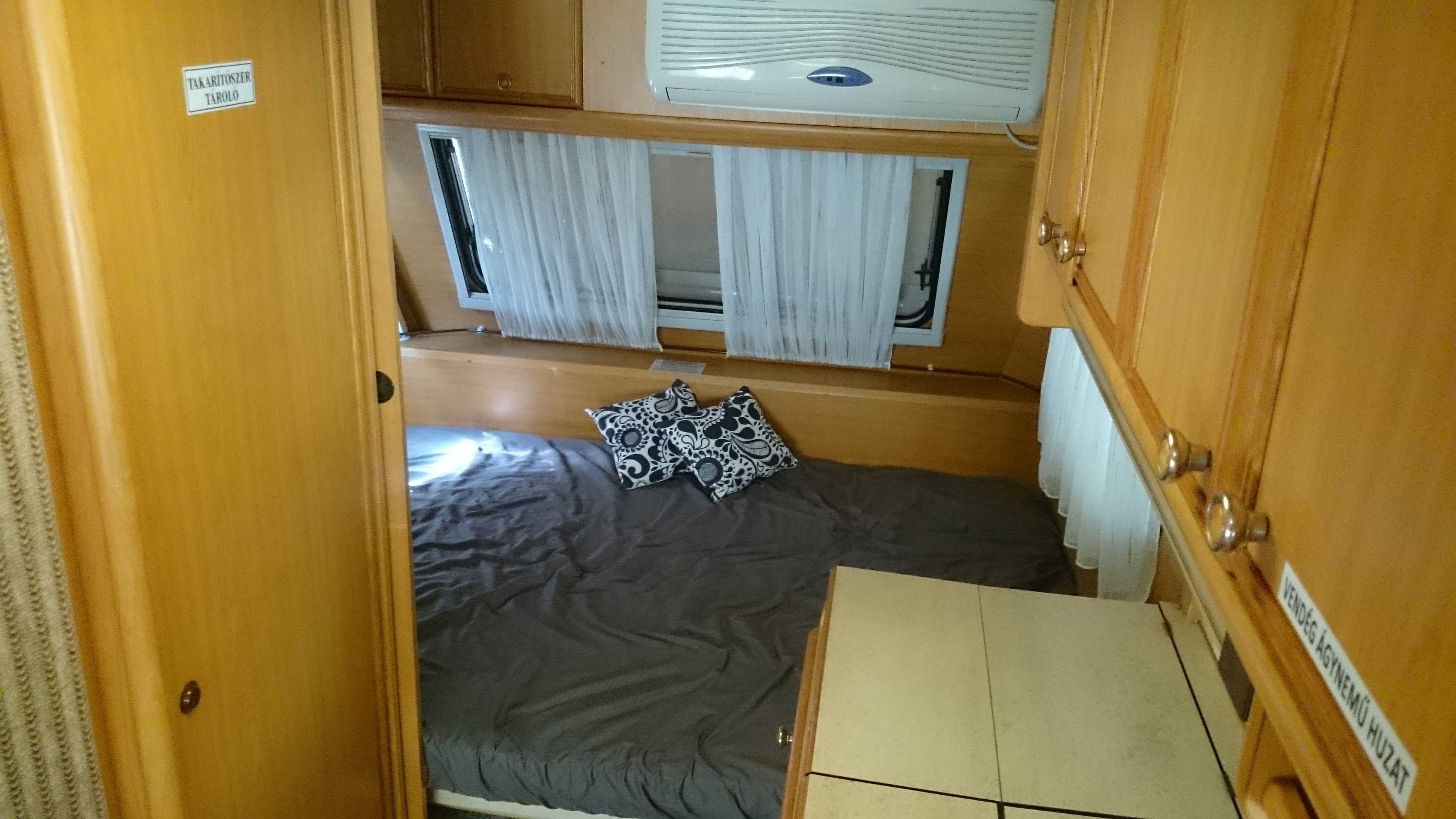 Bérlőink részére modern, igényesen felszerelt, (4-5) illetve (4-6) személyes „Split” klímás lakókocsik (3 db) állnak rendelkezésre a kempingben, (kb.100-m a tengertől és a vizesblokktól) amelyekben 4-6 személy részére tudunk kényelmes elhelyezést nyújtani. A lakókocsihoz zárt elő sátor és még kb. 3x3 m-es pavilon tartozik. Az elő sátorban fa padlózat, PVC padlóborítással biztosítja a kényelmes tartózkodást. A lakókocsik kerti bútorral, hűtőszekrénnyel, mini konyhával, konyhai eszközökkel, mikrohullámú sütővel, edényekkel, 2 főzőlapos villany rezsóval, ágyneművel felszereltek, (ágyneműhuzatot vinni kell). Részletes felszereltség listát e-mailban küldünk.