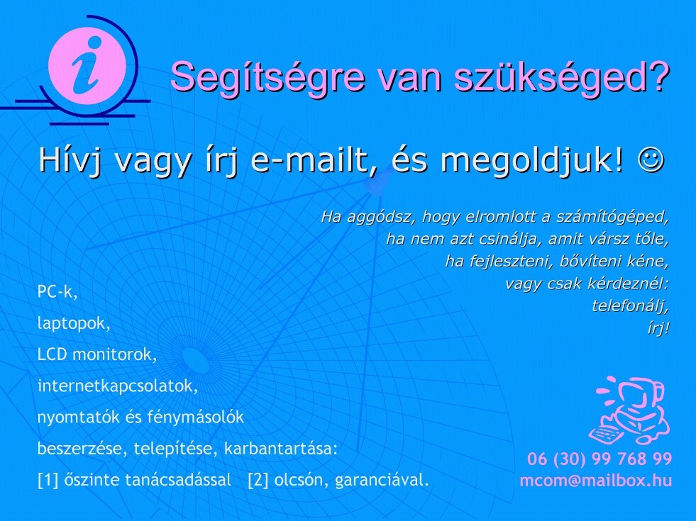 [1] őszinte tanácsadással [2] olcsón, garanciával. -