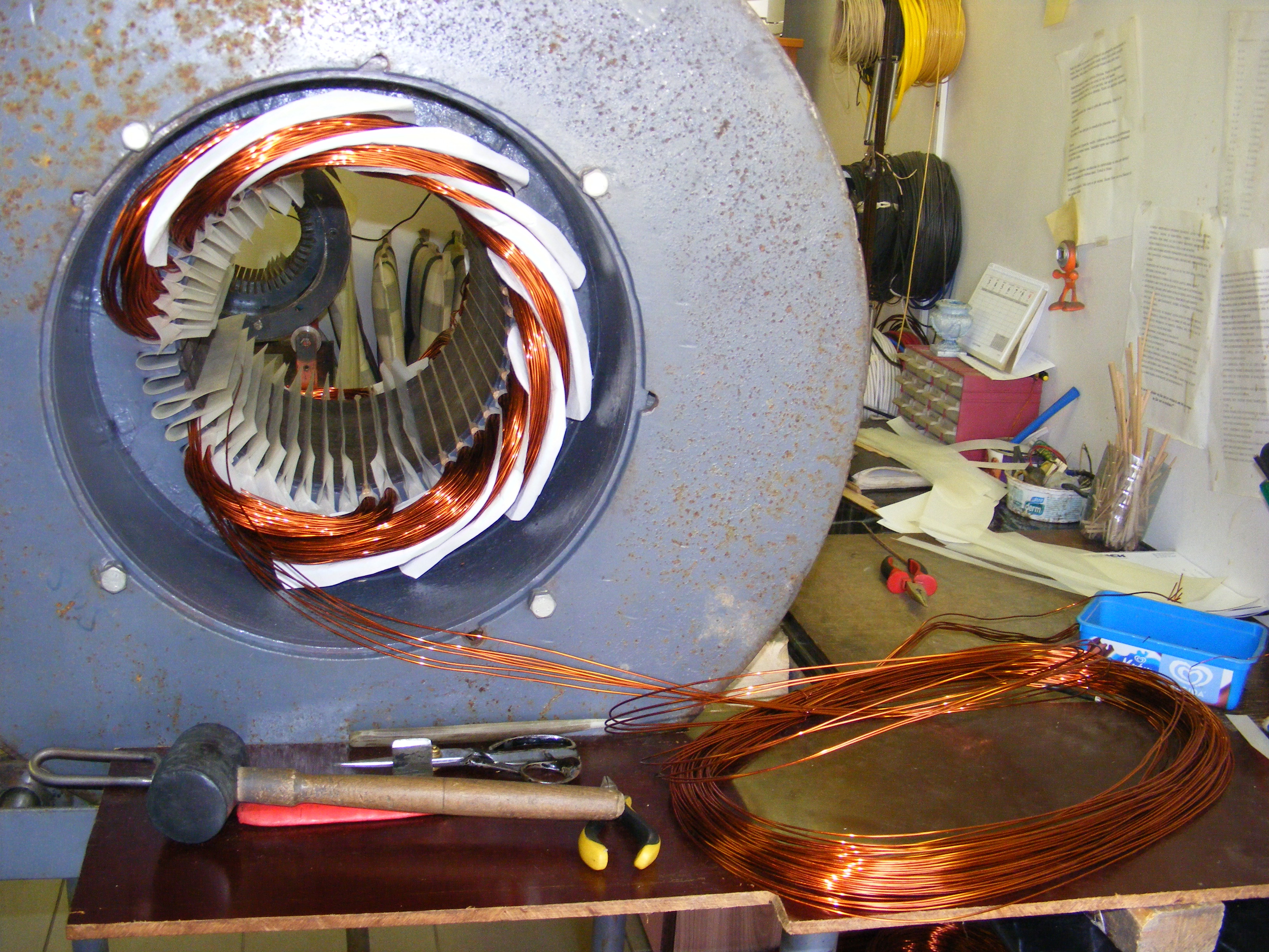 1 és 3 fázisú villanymotorok 110kw-ig tekercselése, csapágyazása, komplett felújítása.