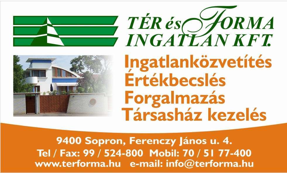 Tér és Forma Ingatlanközvetiő Értékbecslő kft. | 9400 Sopron, Ferenczy János u. 4