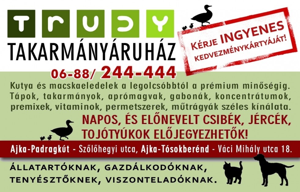 Tápok, takarmányok, koncentrátumok, premixek, vitaminok, ásványi kiegészítők, gabonák, aprómagvak széles kínálata.